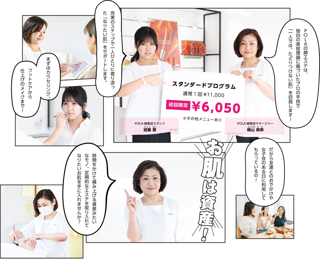 城東通り沿い、長年地域の方に愛されているPOLA城東店。美容のことなら何でもお任せあれ!マンツーマンで数多くの悩めるガールを救ってきたプロのエステティシャン横山さんの美容アドバイス講座!