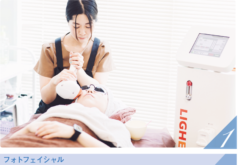 IPLと呼ばれる光を照射することでコラーゲンの生成を促し透明感ある素肌へと導く。肌のターンオーバーが正常化しシミやシワ、毛穴の開き、ニキビや赤ら顔などの様々な肌トラブルを改善で きる。