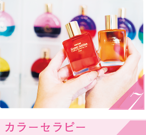 カラーボトルを使ったカラーセラピーも。ご自分のバースデイボトルを見つけてみては。