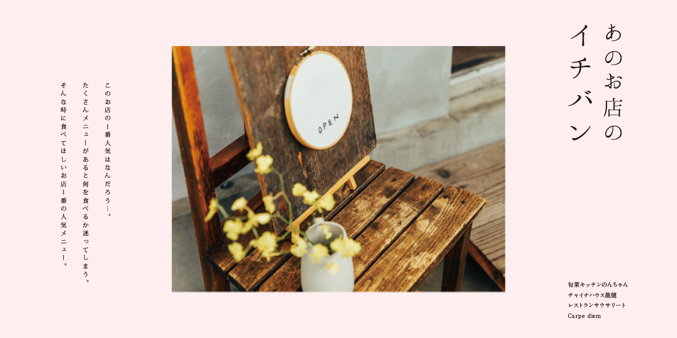 今年の夏に開業から4年目を迎える旬菜キッチンのんちゃん。11時のオープンから間も無く、続々とお客さんがやってくる人気店だ。北海道出身の仲良し家族が手がける数々のメニューの中で1番人気を誇るのが、「スープカレー」だ。1970年代に札幌市の喫茶店で提供された“薬膳カリィ”がきっかけに北海道で広まったメニューで、元々は身体を気遣った健康食として作られたものだという。ポークやビーフなどお店によってカレーの味は様々で、のんちゃんのスープカレーは数十種類のスパイスと野菜の旨味が凝縮されたコクが特徴。口に入れた瞬間にスパイスの旨味が広がる食べ応えのある逸品。1口目はカレーだけで、2口目はご飯と一緒に…。ガツンとスパイスが効いたカレーはクセになる美味しさで、食べる手が止まらなくなること間違いなし。色鮮やかな素揚げ野菜たちとの相性も抜群で、一緒に食べることにより野菜の甘みが引き立ち、飽きることなく色々な味を楽しむことができる。そして、なんといっても大ぶりなチキンレッグが丸々1本入っているのが嬉しい。ほろほろと柔らかいチキンがより食欲を掻き立てる。追加でチーズや納豆などのトッピングができたり好みの辛さを選べたりするので、自分だけの美味しさを見つけてみては。