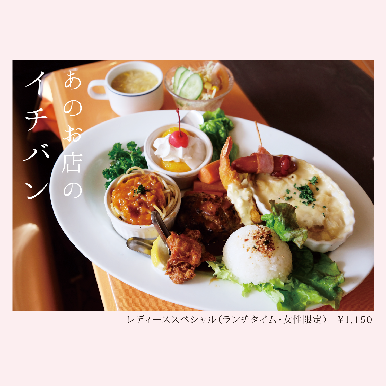 今年で開業43周年を迎えるサウサリート。老若男女、世代を超えて愛されている老舗洋食店だ。レトロな店内は開店当時とほとんど変わらぬ雰囲気で、落ち着いた時間を過ごせる。オーナーご夫婦の人柄の良さや、昔から変わらない味に惹かれて足繁く通う常連客も多い。ハンバーグ、パスタ、オムライス、グラタンなど様々な洋食メニューのほか、女性に人気なパフェやお子様メニューと豊富に揃う料理。たくさんあるメニューの中からどれか一つを選べない…そんな時に是非頼んでほしいのが、お店1番人気のレディーススペシャル。女性限定のメニューではあるが、その内容の豪華さに驚く。牛100%の肉肉しい手ごねハンバーグ、カリッと揚げられた唐揚げ、エビフライ、パスタ、とろとろチーズのマカロニグラタン、デザートの杏仁豆腐などなど…。あれも食べたい、これも食べたい、という気持ちを救ってくれるまさにスペシャルなメニューだ。さらにミニサラダとスープも付いた完璧な一品。サウサリートの美味しいが全部詰まった夢のようなスペシャルランチをご堪能あれ。