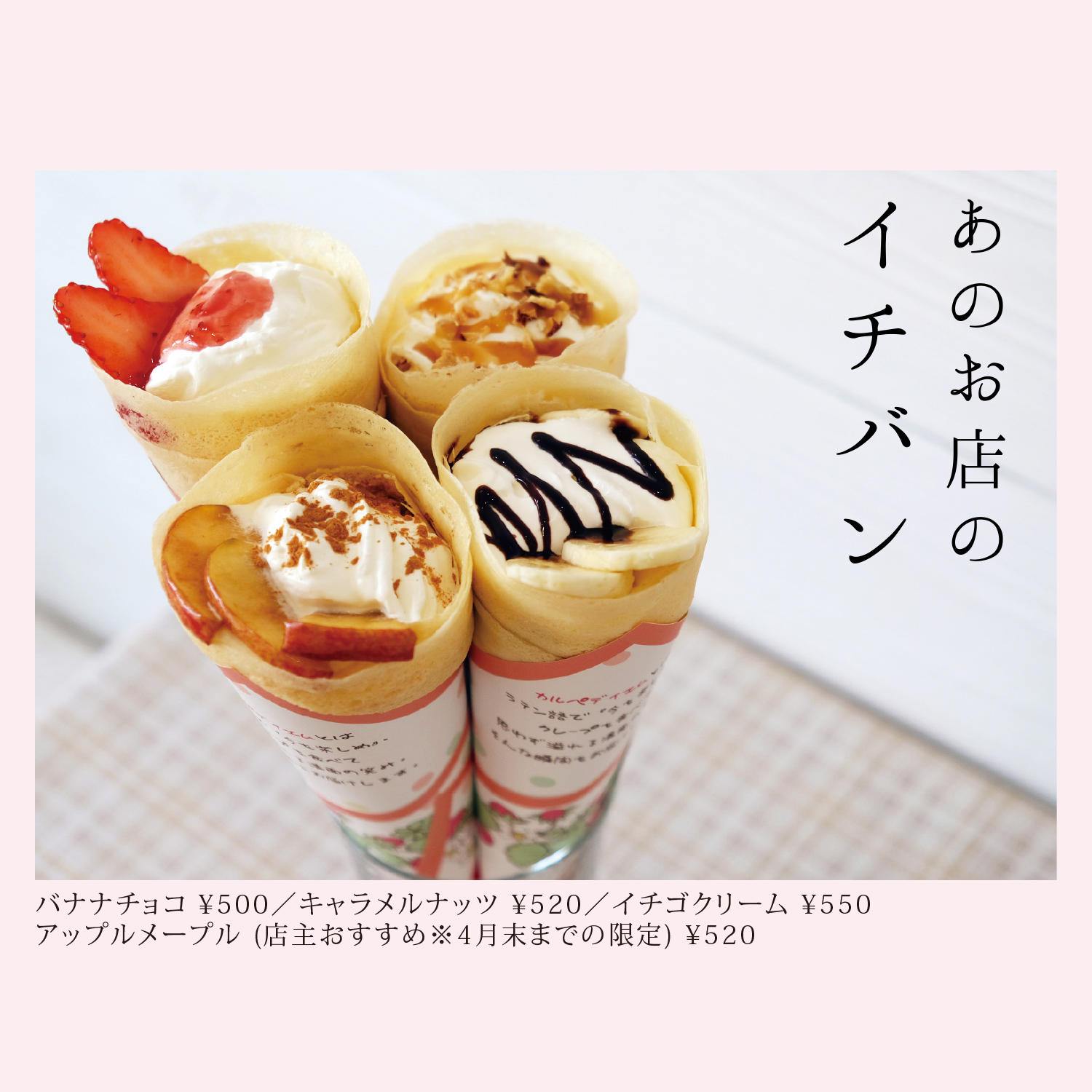ラテン語で”今を楽しめ“という意味をもつCarpe diem(カルペディエム)。クレープを食べて明るい気持ちになってほしいとの思いが込められている。キッチンカーでの販売から始まり夢だった店舗をオープンして5年、日々たくさんのお客さんを笑顔にしてきた。クレープは全15種類と、日替わりや期間限定メニューが揃う。「ぺろっと食べられるクレープ」がコンセプトで、クリームと生地は甘さ控えめなので飽きることなく最後まで食べ進められるのが嬉しいポイント。クリーム系、サラダ系、ホットクレープのカテゴリーがある中で、1番人気はクリーム系の3商品。バナナチョコ、イチゴクリーム、キャラメルナッツ、どれも同じくらい人気だそうでお店の定番商品となっている。中でもおすすめはキャラメルナッツ。キャラメルソースとパウダー、ミックスナッツの食感が楽しめる。クリームもたっぷりで、もちもちの生地と相性満点。口に入れた瞬間、その美味しさで幸せな気持ちになること間違いなし。