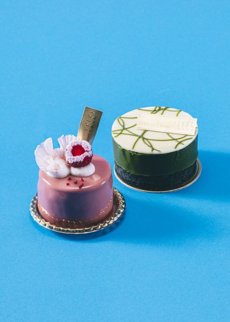 広々としたラグジュアリーな空間で美しいお皿盛りのデザー トが楽しめる山梨では珍しいカフェ。季節によって変わりゆ くスイーツの中で、セレスカフェが今おすすめするのはこち らの2つ。黒ごまタルトの上に濃厚な抹茶ムースが乗ったテ・ ヴェール。中に入っているサクサク食感のフィアンティーヌ と甘酸っぱいオレンジコンフィがアクセントとなり、抹茶の ほろ苦さとよく合う、抹茶好きにはたまらない極上の味。も う1つのルビーフレールは、夏でも食べやすいルビーチョコ ムースのケーキ。中は爽やかなライチムースとラズベリー ジュレで仕上げ、土台となるピスタチオのフィナンシェと相 性抜群。どちらも店内でもテイクアウトでも楽しめるのでぜ ひ足を運んでほしい。