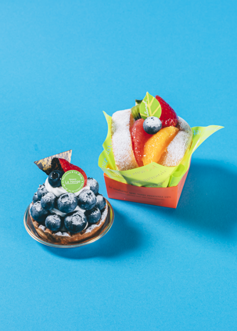 甲府市上石田の住宅街でオープンして今年で17年目となる ラ・ネージュ。扉を開けると優しい笑顔のスタッフさんが出 迎えてくれる。地域密着型のケーキ屋として皆が食べやすい ケーキを作っている。定番商品のスペシャルロールは、たっ ぷりのカスタードと生クリームをふわっと軽いロールケーキ が包みこむ。上にはたくさんのフルーツが乗り、宝石箱のよ うなスイーツだ。期間限定のブルーベリータルトは、塩山の 斉藤農園から仕入れたブルーベリーをふんだんに飾り付け。 アーモンドの香ばしさが感じられるタルトにブルーベリー風 味のカスタードクリームが絞られた上品な味のタルト。8月頃 までの販売のためお見逃しなく。