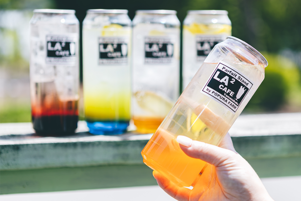 カラフルで写真映え間違いなし!夕張メロンジュース、山中湖ブルーソー ダをはじめ全 7 種。テイクアウトもできるので手土産にもおすすめ。