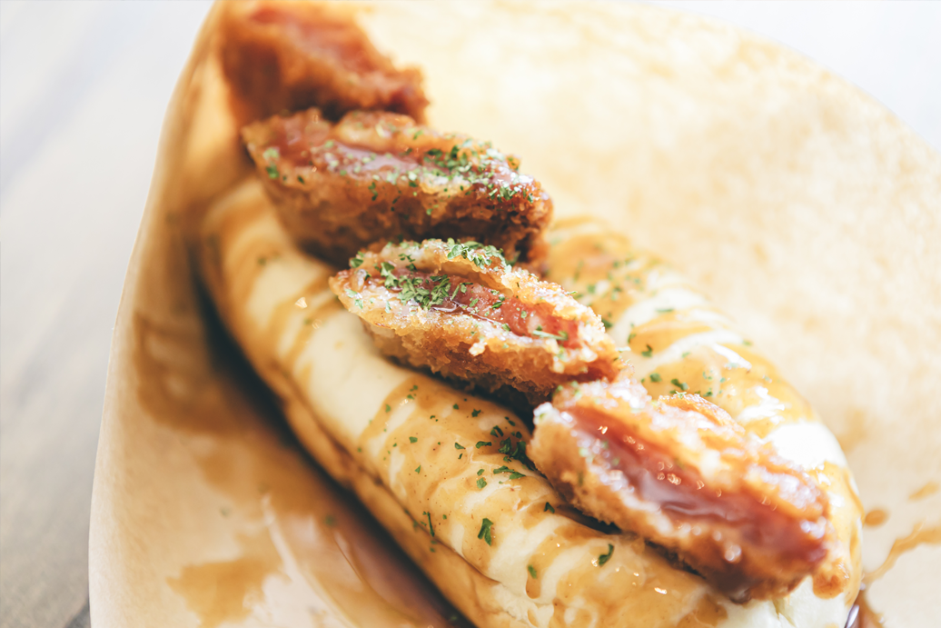 お店おすすめのハムカツのほか、 あずききなこホイップなどの甘い 系も含め全 5 種類。どれも魅力的 で迷ってしまう...!